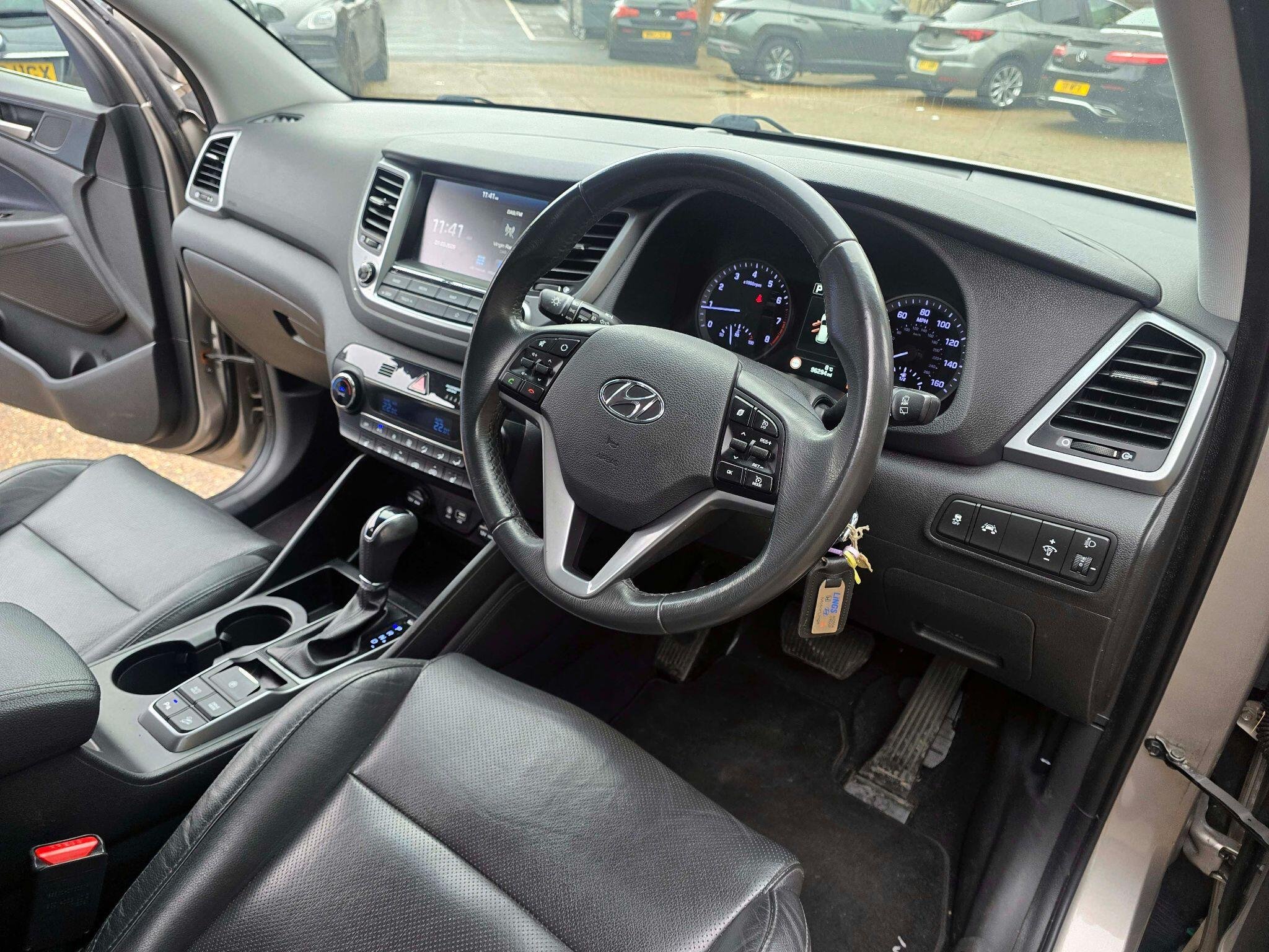 This 2018 Hyundai TUCSON T-GDi Sport Edition boasts a full service history, offering peace of mind alongside its impressive features. This Euro 6 compliant 1.6 litre petrol model comes with a 3 month warranty and a 12 month MOT provided on purchase. Inside, you'll find a spacious cabin equipped with dual zone climate control with ioniser, heated rear seats for added comfort, and an 8 inch touchscreen satellite navigation system complete with traffic messaging and a reversing camera. Bluetooth connectivity is also included, making it easy to stay connected on the go. The TUCSON T-GDi Sport Edition offers a compelling driving experience, accelerating from 0 to 62mph in just 8.9 seconds, demonstrating its responsive performance. Its large boot space provides ample room for luggage or shopping, making it a practical choice for families or those who need extra capacity. Furthermore, this model benefits from a low insurance group, indicating that running costs are likely to be more affordable compared to similar vehicles. Front and rear parking sensors are also fitted, aiding manoeuvrability in tight spaces. -